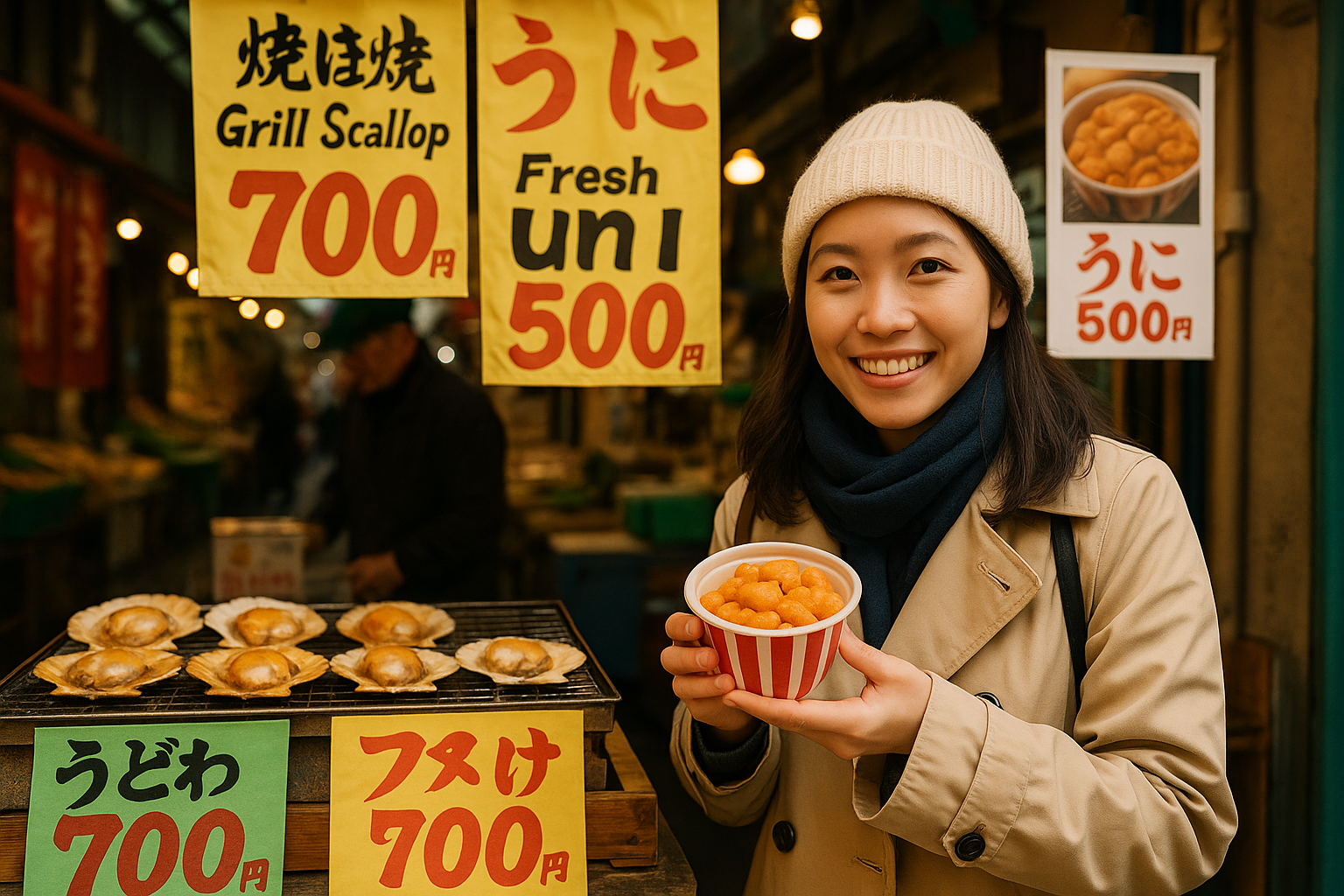 일본 최북단에 위치한 홋카이도는 신선한 해산물의 천국으로 불립니다. 그 중심에 있는 하코다테 아사이치(아침시장)는 하루 수천 명의 관광객이 찾는 인기 명소입니다. 이곳에서 반드시 맛봐야 할 별미는 바로 카이센동(해물덮밥)입니다. 연어알, 게살, 성게, 참치 등을 원하는 만큼 골라 즉석에서 덮밥으로 만들어주는 시스템이 여행객에게 큰 인기를 끌고 있습니다. 특히 2024년에는 ‘셀프 카이센동 바’가 생겨, 취향대로 덮밥을 만드는 체험이 트렌드로 자리 잡고 있습니다. 삿포로의 니조 시장도 무시할 수 없습니다. 비교적 규모는 작지만, 홋카이도산 왕게(타라바가니)나 홋카이도 멜론을 즉석에서 맛볼 수 있는 점에서 여행자들의 큰 사랑을 받고 있습니다. 최근에는 홋카이도산 유제품을 활용한 크림치즈빵도 SNS에서 화제가 되고 있습니다. 남쪽으로 내려가 도호쿠 지방으로 가면, 아오모리의 아우가 지하시장이 기다리고 있습니다. 이곳에서는 노케동 시스템이 유명합니다. 여러 개의 재료를 소량씩 구입해 덮밥으로 직접 구성하는 형태로, 여행자에게는 즐거운 체험이자 다양한 맛을 경험할 수 있는 기회입니다. 특히 스지코(연어알 절임), 시로우오(흰 치어) 등 희귀한 해산물을 저렴하게 즐길 수 있습니다.